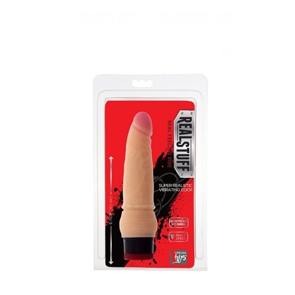 Vibrador multivelocodades, de 15.5 cm , com aparência e toque realista ( pele, veias e contornos) e saliências no final do corpo para uma estimulação mais pormenorizada.